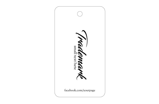 Étiquette pour vêtements avec sceau, en carton plastifié brilliant, personnalisé numériquement avec folio noir.