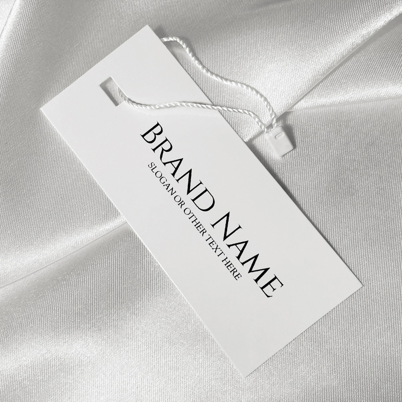 Etiquette en carton personnalisée HT-M101 destinée aux produits textiles, comme les vêtements pour femmes, hommes et divers accessoires d'habillement.