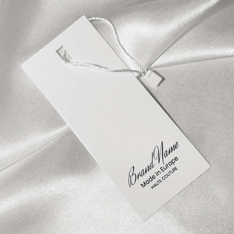 Etiquette en carton personnalisée HT-M102 destinée aux produits textiles, comme les vêtements pour femmes, hommes et divers accessoires d'habillement.