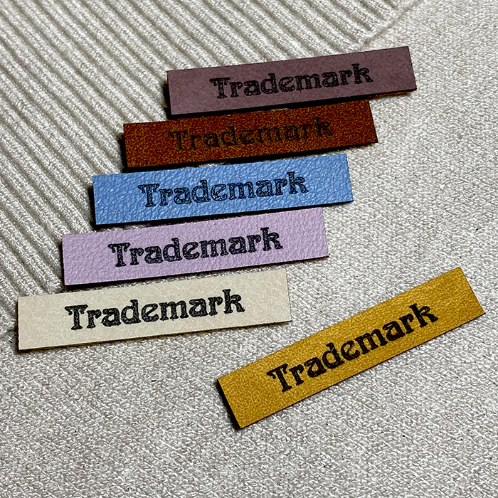 Étiquette personnalisée EP-M125 en cuir artificiel pour vêtements, sacs, chaussures et divers accessoires vestimentaires.