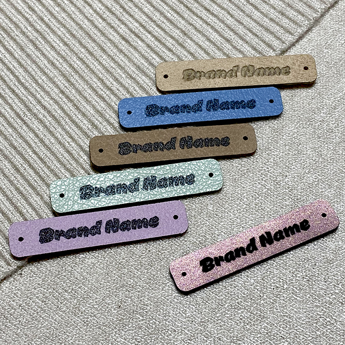 Étiquette personnalisée EP-M107 en cuir artificiel pour vêtements, sacs, chaussures et divers accessoires vestimentaires.