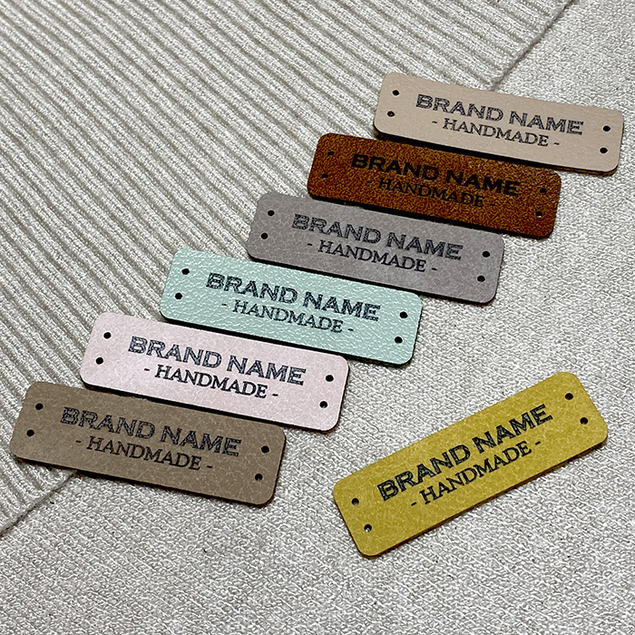 Étiquette personnalisée EP-M108 en cuir artificiel pour vêtements, sacs, chaussures et divers accessoires vestimentaires.