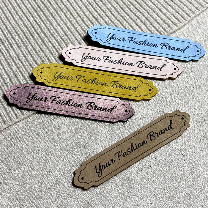Étiquette personnalisée EP-M116 en cuir artificiel pour vêtements, sacs, chaussures et divers accessoires vestimentaires.