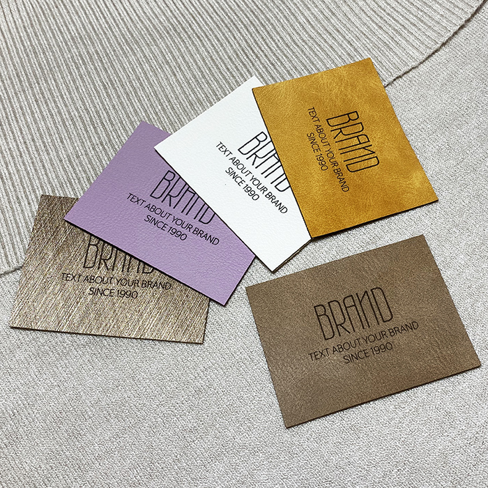 Étiquette personnalisée EP-M148 en cuir artificiel pour vêtements, sacs, chaussures et divers accessoires vestimentaires.