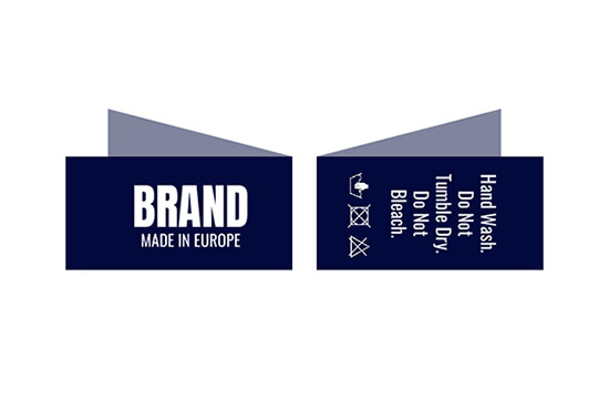 Étiquette textile pliée au milieu personnalisée avec des inscriptions brodées Digital High Density.