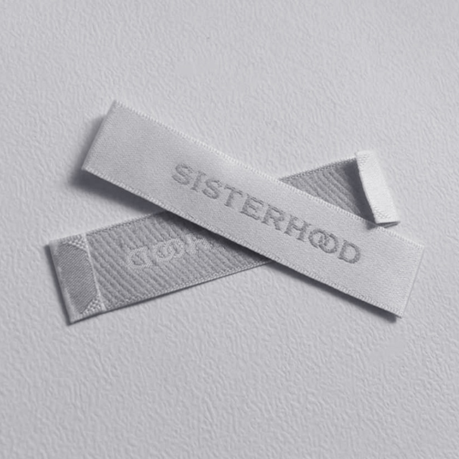 Étiquette simple et élégante de petites dimensions brodée numériquement avec le nom de la Marque ou avec un logo, en matière textile aux couleurs préférentielles. Ce modèle d'étiquette textile est fabriqué en matériaux de haute qualité, utilisant les technologies les plus avancées dans le domaine de la broderie Digitale au niveau industriel.