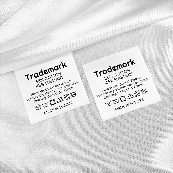 Étiquette en satin qui contient des informations techniques sur la composition du matériau, les symboles de lavage et d'entretien, mais aussi le nom ou le logo du fabricant. Ce modèle d'étiquette textile est fabriquée à l'aide des technologies les plus avancées dans le domaine de l'impression numérique sur un support textile. Les étiquettes sont imprimées sur un satin spécial par le procédé de transfert thermique, avec une qualité d'impression impressionnante et une grande résistance au lavage.