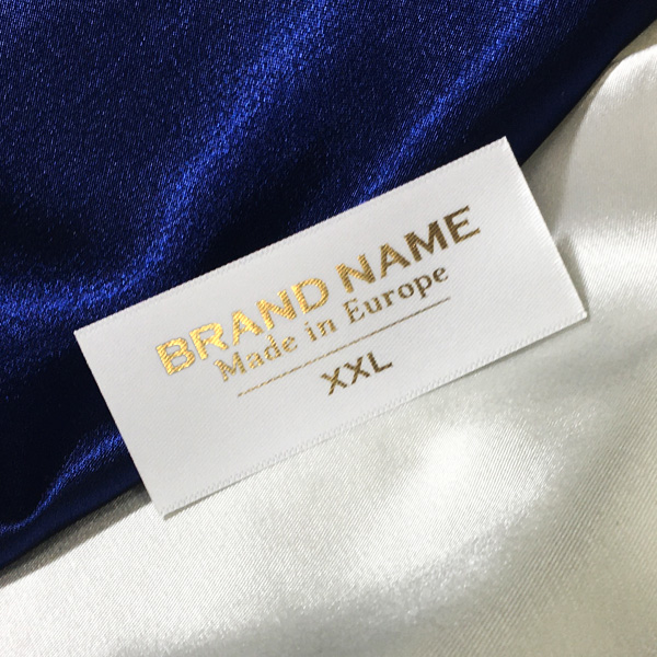 Etiquette personnalisée TL-M48 imprimé sur du textile satiné adapté à vêtements et articles divers.