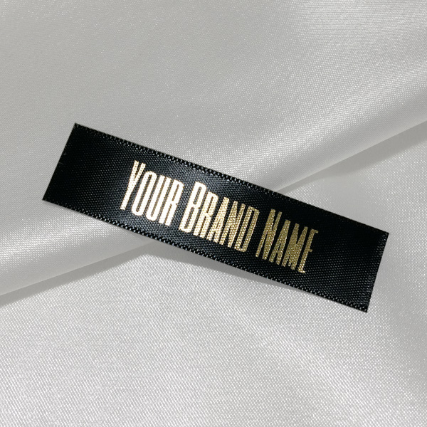 Etiquette personnalisée TL-M130 imprimé sur du textile satiné adapté à vêtements et articles divers.
