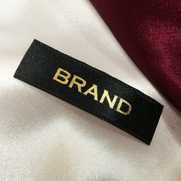 Etiquette personnalisée TL-M10 imprimé sur du textile satiné adapté à vêtements et articles divers.