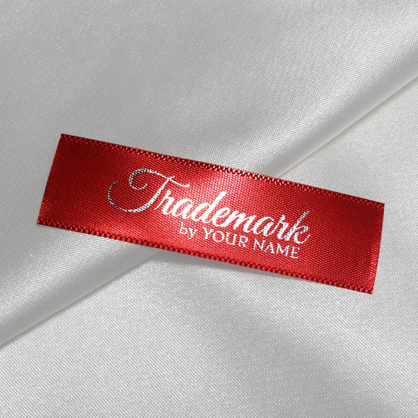Etiquette personnalisée TL-M139 imprimé sur du textile satiné adapté à vêtements et articles divers.