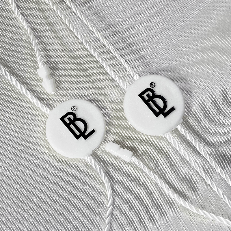 Scellé en plastique ST-M33 en forme ronde, très élégant et magnifiquement personnalisé sur deux côtés avec le nom ou l'emblème de la Marque, adapté aux vêtements, chaussures, sacs, etc. Ce modèle de scellé est fabriqué en matériaux de haute qualité, utilisant les technologies les plus avancées de ce domaine.